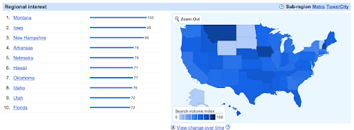 most searched issue in Iowa and