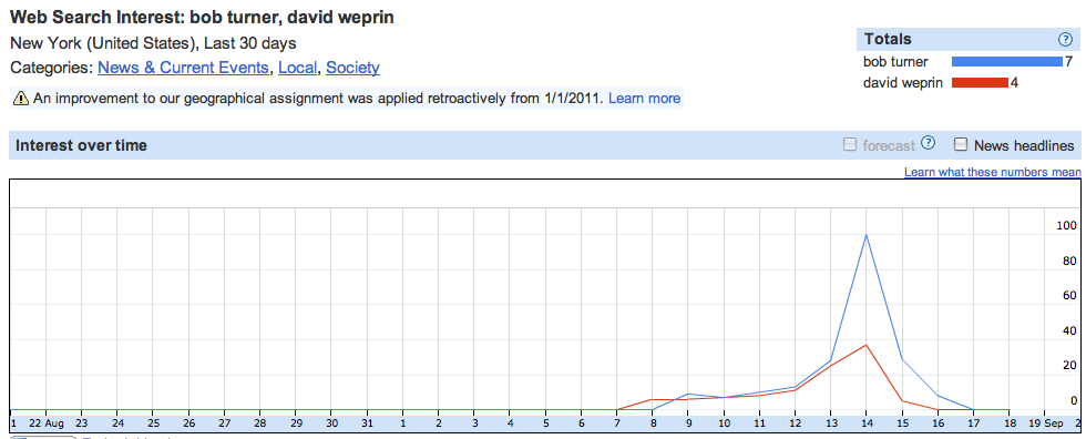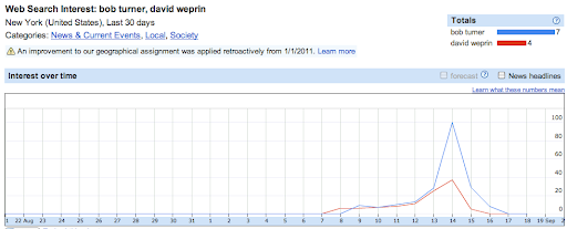 [Michelle Bachmann] is the most searched-for announced candidate in Iowa. She’s taken off and now far surpasses any other declared candidate, especially those that are attending the Straw Poll. If you look at the pack together, Congressman [Ron Paul] trails Bachmann in the number two spot, as do searches for Governor [Tim Pawlenty], Senator [Rick Santorum] and businessman [Herman Cain].